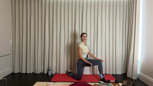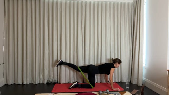 medium/heavy resistance band, set of 8 or 10lb weights, floor mat