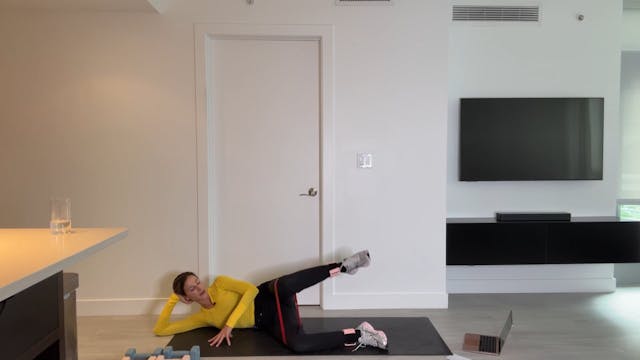 set of 2 or 3lb weights, 5lb weights (optional), ankle weights, floor mat